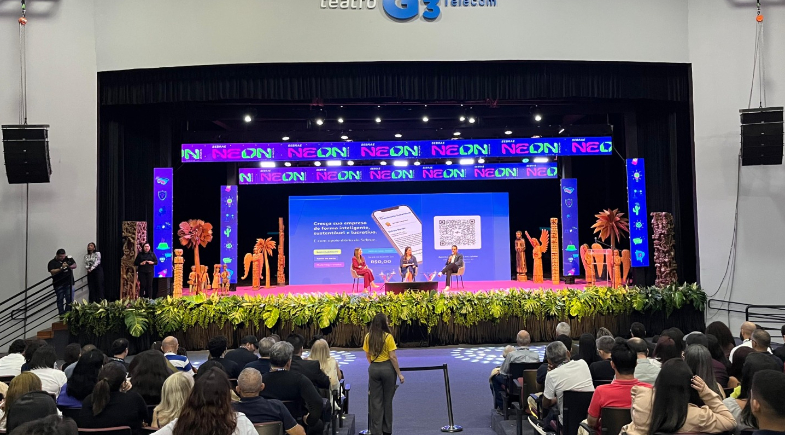 A diretora de Administração e Finanças do Sebrae Nacional, Margarete Coelho, mediou a palestra “IA com propósito: a tecnologia potencializando o crescimento sustentável dos pequenos negócios”, realizada nesta quarta-feira (3), no palco Arena do Futuro, durante o NEON, maior evento de inovação e empreendedorismo do Nordeste.