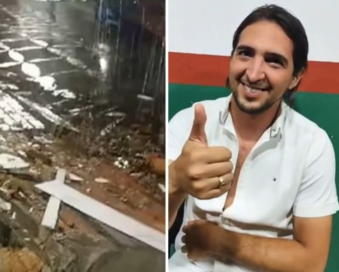 “Estou bem, mas fiz um raio-X e foi constatado que tive uma fratura na clavícula. Agora, vou ser encaminhado para a regulação, para poder ir ao ortopedista. No acidente, estávamos na chuva porque sou responsável pela decoração do carnaval, e nos abrigamos debaixo de um puxadinho. Com a pressão da chuva e do vento, a estrutura não aguentou e desabou sobre nós. A marquise de alvenaria atingiu meu ombro, e o outro rapaz está recebendo atendimento”, relatou o vereador.