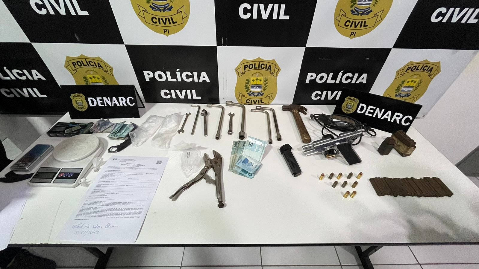 O Departamento de Repressão ao Narcotráfico do Piauí (DENARC-PI) prendeu um membro da organização criminosa Primeiro Comando da Capital (PCC) e um casal pertencente a facção rival, Bonde dos 40, durante a Operação 22 em Teresina, nesta terça-feira (21). Foram apreendidas ferramentas, dinheiro e uma arma de fogo.