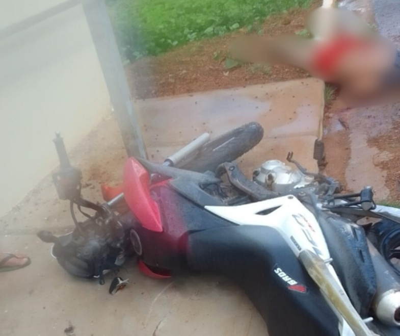 Um motociclista identificado como João Pedro Bandeira morreu no ínicio da tarde desta terça-feira (17), na cidade de Matias Olímpio, após colidir a moto que pilotava contra um poste de energia.