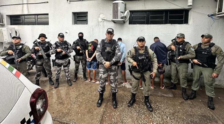 Durante as diligências, um grupo foi visto entrando rapidamente em uma residência. Diante da situação de flagrante e perseguição contínua, as equipes realizaram a intervenção no imóvel e abordaram os suspeitos identificados pelas iniciais V.M.P.S., M.V.P.S., N.C.S., R.G.S. e D.H.J.
