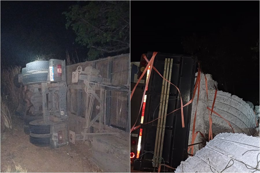 Um caminhão, modelo Volvo, saiu da pista e tombou, derramando toda a carga, na rodovia BR-316, trecho do município de Valença do Piauí. A ocorrência foi registrada no fim da tarde de sábado (27). Segundo informações da Polícia Rodoviária Federal (PRF), o condutor do caminhão, um homem de 50 anos, teve lesões leves.