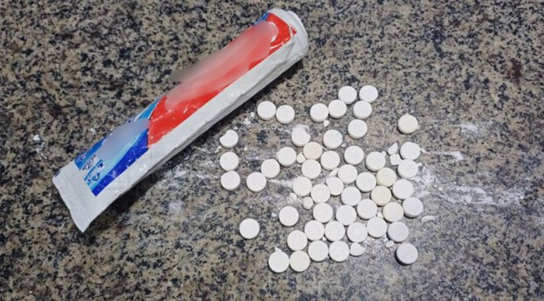 Foram encontradas uma cartela com três comprimidos de “rebite”, além de outros 51 comprimidos escondidos dentro de um tubo de pasta de dente no momento da revista pessoal. Segundo a PRF, o motorista informou que a substância era destinada ao próprio consumo.