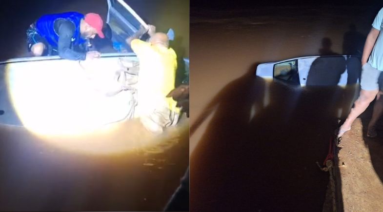Em vídeos, é possível ver o momento em que as pessoas conseguem retirar a vítima de dentro do veículo, que posteriormente também foi removido da água.