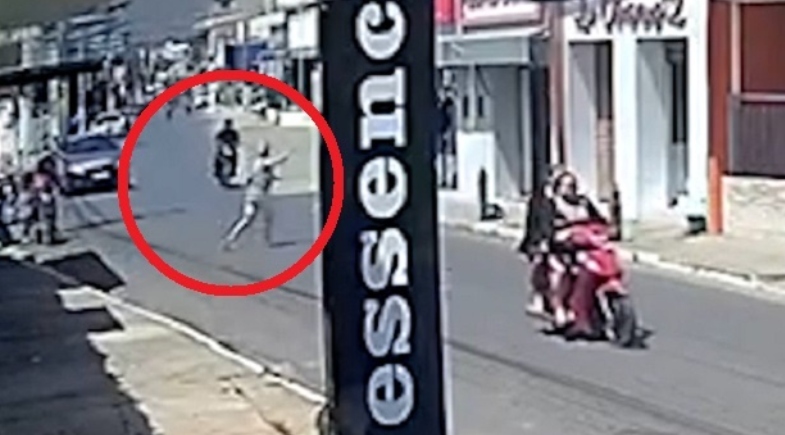 O caso aconteceu na última quinta-feira. Nas imagens, é possível ver a pedestre caminhando pela calçada e, ao tentar atravessar a rua, sendo atingida pela motocicleta. O impacto derruba tanto a mulher quanto o condutor, que também cai logo em seguida.