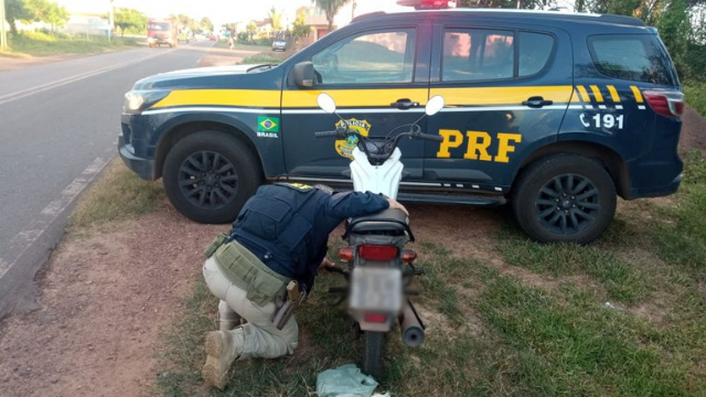 Ao ser questionada sobre o documento do veículo, a condutora informou aos policiais que não estava portando, mas que poderia pegá-lo em casa. Dando continuidade aos procedimentos de identificação veicular, a equipe constatou que a motocicleta apresentava alguns sinais de adulteração nos elementos identificadores.