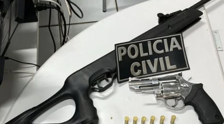 Durante as buscas, os agentes apreenderam uma arma de fogo calibre .38, com seis munições deflagradas, além de uma carabina que estaria em posse da acusada.