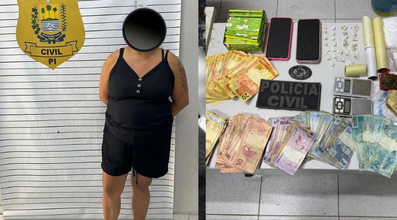 Uma mulher foi presa em flagrante nesta terça-feira (24), no Conjunto Irmã Dulce, bairro Planalto, em Parnaíba, litoral do Piauí. Segundo a Polícia Civil, as investigações apontam que o imóvel funcionava como ponto de venda de drogas em frente a uma escola municipal.