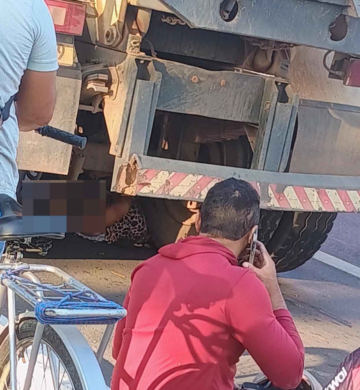 As circunstâncias do acidente ainda estão sendo apuradas, mas testemunhas afirmam que a mulher pilotava a moto quando bateu no caminhão e caiu, ficando entre as rodas do veículo.