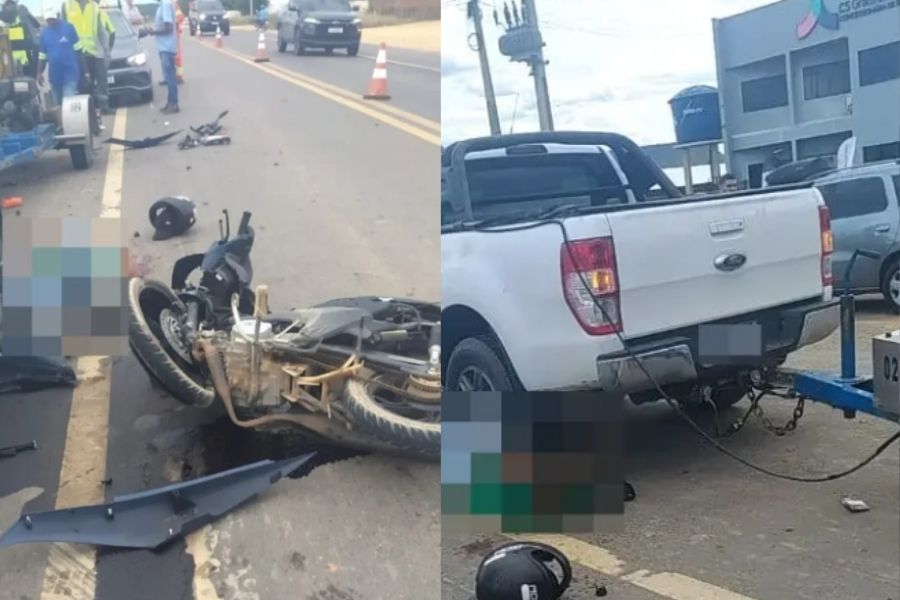 Uma mulher morreu e um homem ficou gravemente ferido após uma colisão traseira entre uma caminhonete e uma motocicleta na tarde desta quinta-feira (22), por volta das 13h40, no km 349 da BR-135, no município de Bom Jesus, no Piauí.