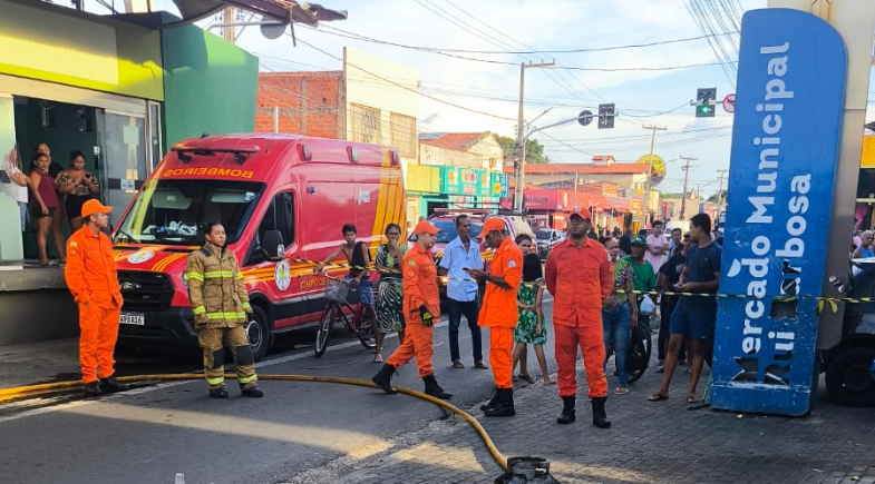 Uma mulher identificada como Irismar Araújo, de 51 anos, teve o corpo queimado durante um incêndio que atingiu um box no mercado do bairro São Joaquim, na zona Norte de Teresina, na tarde desta sexta-feira (20). A suspeita é de que um botijão de gás tenha explodido. O Corpo de Bombeiros foi acionado e conseguiu conter as chamas.