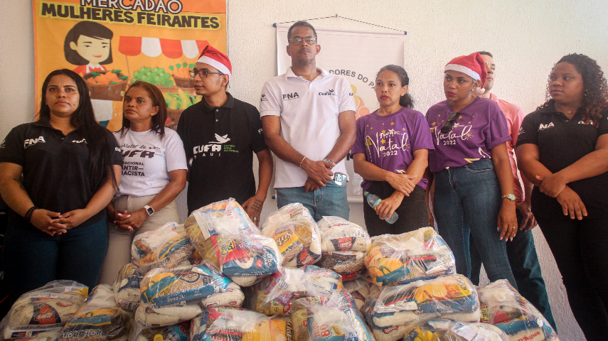 A primeira edição do Natal Potente, campanha de arrecadação e distribuição de alimentos da CUFA Piauí (Central Única das Favelas) chegou ao Parque Brasil, na extrema zona Norte de Teresina, na manhã deste domingo (24), véspera de feriado de Natal. Na localidade, centenas de mulheres e mães foram contempladas com cesta básica.