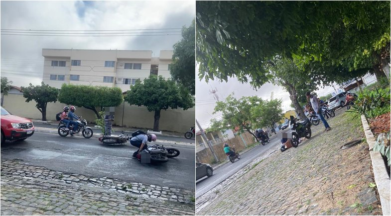 Óleo na pista provoca queda de motociclistas | Foto: Reprodução/WhatsApp