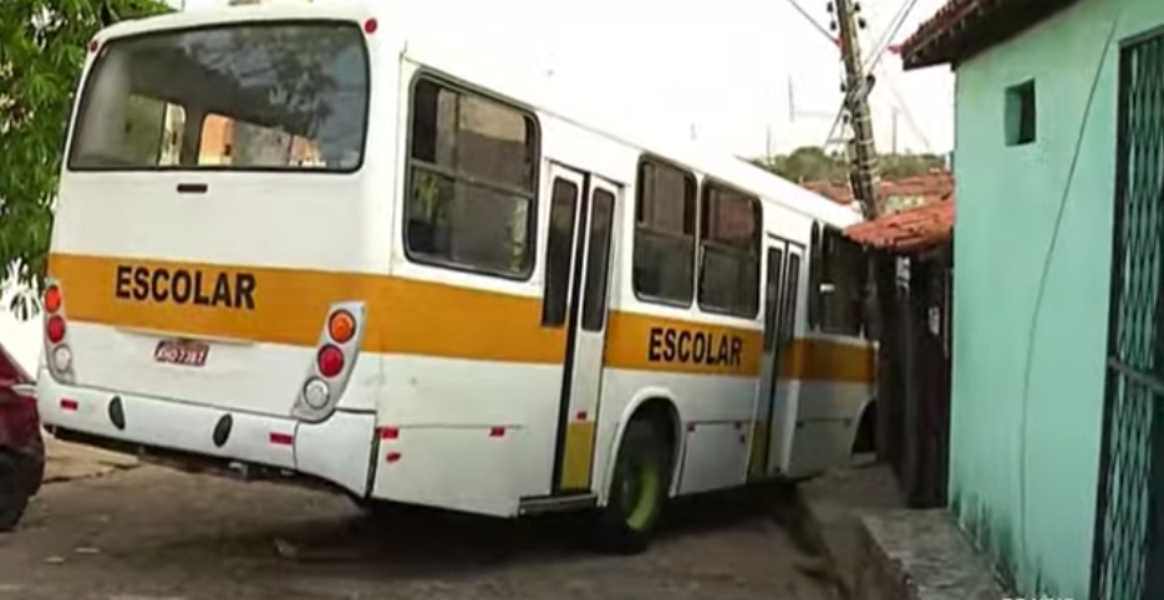 Um ônibus escolar desceu uma ladeira, colidiu em sequência contra um carro e um poste, e quase invadiu uma casa, no final da tarde desta quinta-feira (07), na Vila Costa Rica, zona Sul de Teresina.