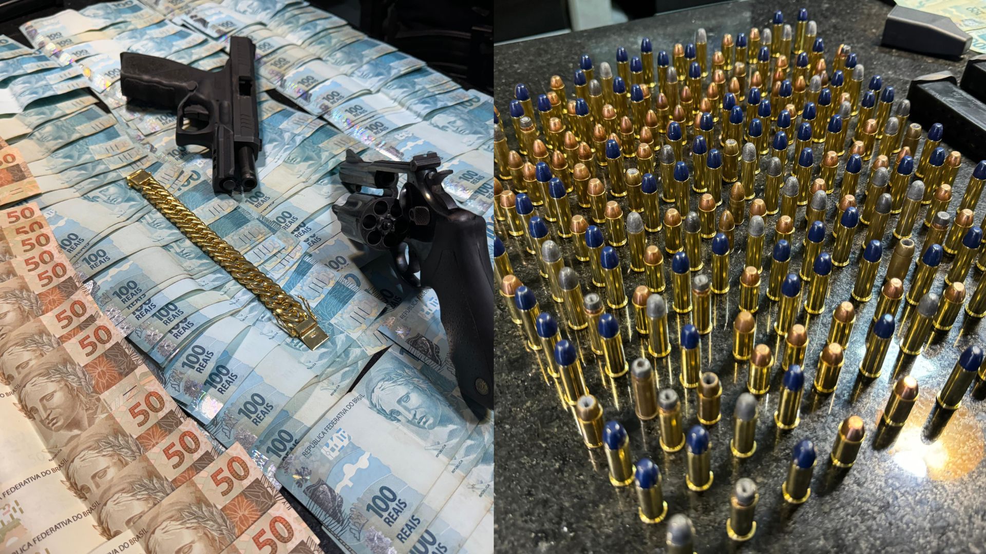 Serão cumpridos ao longo do dia 27 mandados de busca e apreensão. Até o momento, uma grande quantidade de munições, dinheiro, celulares, drogas, joias e cinco armas foram apreendidas.
