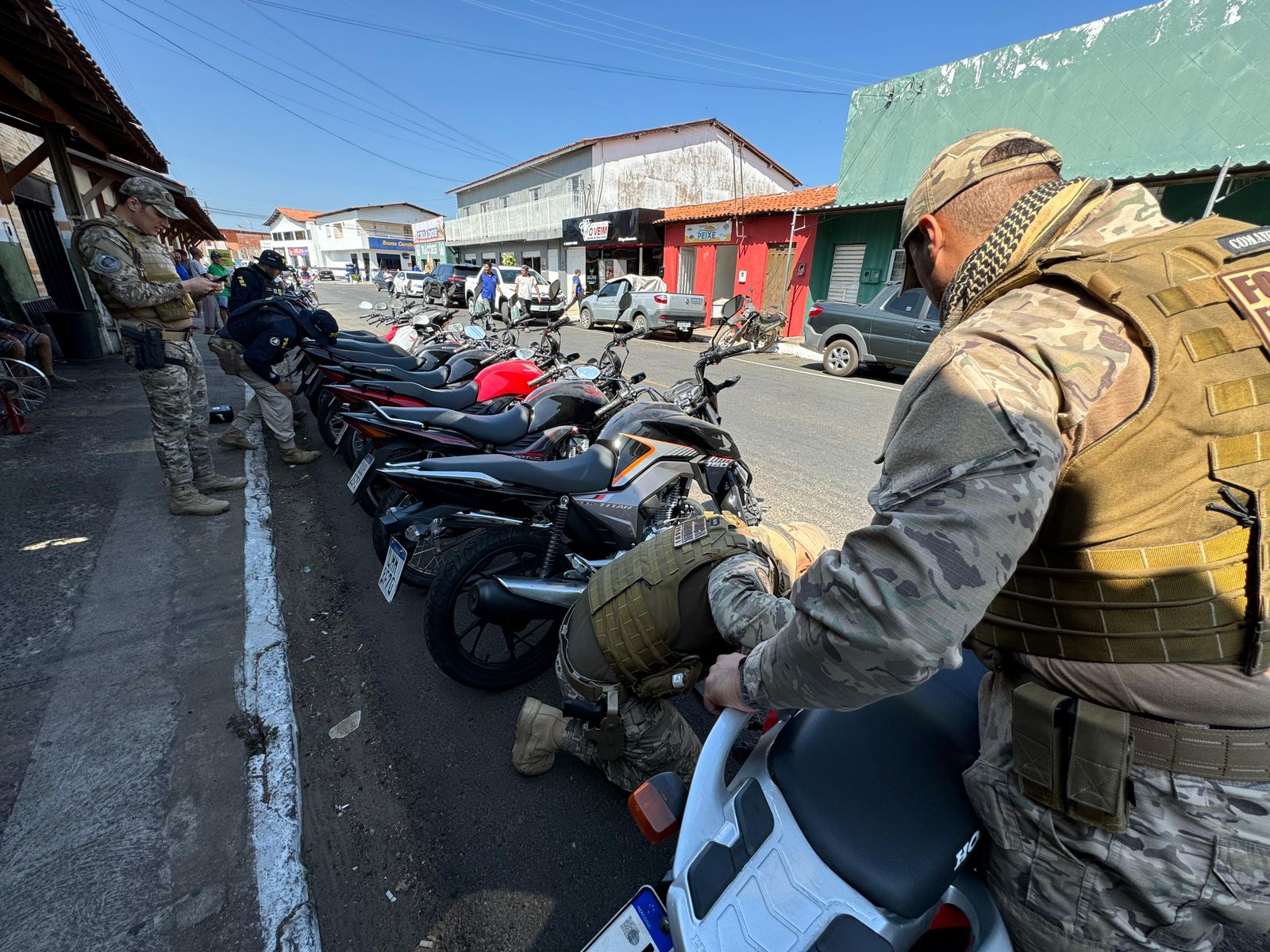 blitze também foram realizadas em todo o município para apreender motocicletas roubadas, furtadas, adulteradas e clonadas. Equipes móveis realizaram abordagens para reforçar essas apreensões.