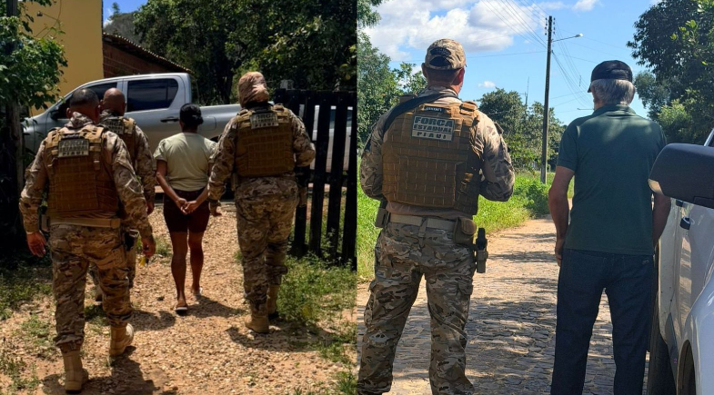 No centro do município, os mandados tinham como foco suspeitos de envolvimento com o tráfico de drogas e atuação em facções criminosas. Durante as diligências, uma mulher de 44 anos, identificada pelas iniciais M.F.D., foi presa suspeita de tráfico de entorpecentes. Ela também foi autuada por posse de arma de fogo de uso permitido.