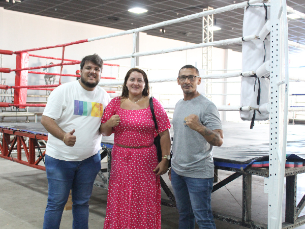 Na manhã desta quinta-feira (13), o presidente da Federação Piauiense de Boxe, Marcos Oliveira; presidente do Conselho Nacional de Boxe, Luciene Coelho, e o diretor da Bizz Entretenimento, Júnior Macêdo, estiveram acompanhando de perto os trabalhos para montar a megaestrutura da arena do Extreme Boxe.