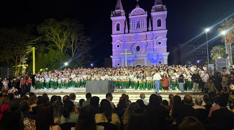 Uma das grandes novidades da programação natalina deste ano é o retorno do Coral das Mil Vozes. O grupo reuniu 100 alunos de 10 escolas estaduais, que se apresentam no Adro da Igreja São Benedito. Também nesta noite, aconteceu a apresentação do espetáculo natalino “O Nascimento de Jesus”, encenado pelo Grupo de Teatro do Monte Castelo.