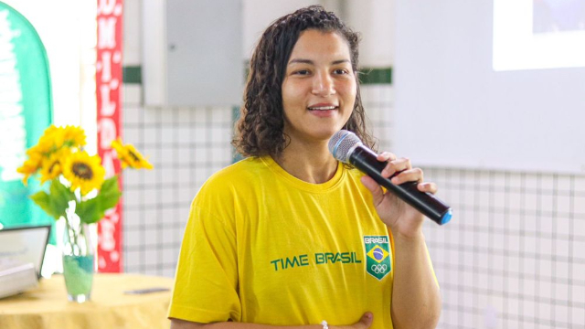 A judoca piauiense Sarah Menezes ministrou palestra na manhã desta quarta-feira (04), para os alunos do Centro Estadual de Tempo Integral Padre Joaquim Nonato Gomes, localizado na zona sul de Teresina. A campeã olímpica compartilhou suas experiências de vida e como os estudos e o esporte transformaram sua história de superação e perseverança.