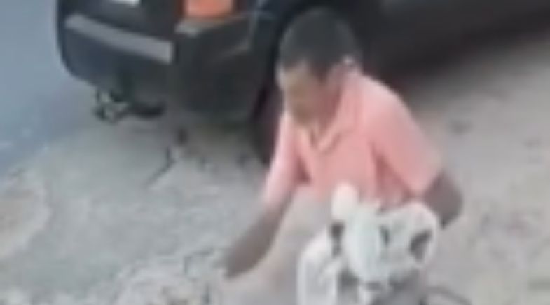 No vídeo divulgado pela polícia, é possível ver um homem usando camisa rosa e bermuda branca, segurando várias sacolas enquanto conduz uma bicicleta. Até o momento, as autoridades não informaram como o crime ocorreu.