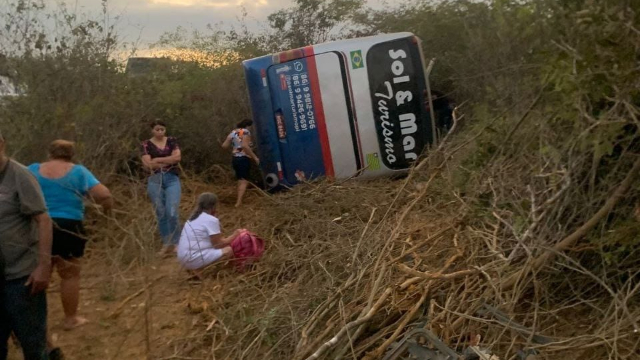 Um acidente envolvendo um ônibus da empresa Sol e Mar Turismo que transportava romeiros de Teresina com destino a Juazeiro do Norte, no Ceará, deixou uma adolescente morta e vários feridos nesta quarta-feira (27). O veículo estava passando pela rodovia estadual em Pernambuco, nas proximidades de Araripina, quando perdeu o controle, saiu da pista e tombou. Conforme a polícia pernambucana, várias pessoas ficaram presas às ferragens.