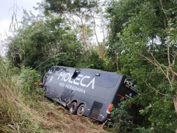 Uma colisão frontal envolvendo o ônibus da banda de forró Moleca 100 Vergonha e uma ambulância, deixou uma pessoa morta e outra ferida na madrugada deste domingo (30), em um trecho da BR-316 no município de Elesbão Veloso, no Piauí. O ônibus desceu a encosta e parou em um aterro.