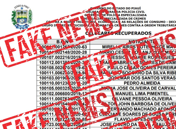A Secretaria Estadual de Segurança Pública do Piauí (SSP-PI) divulgou nesta quinta-feira (20) que é falsa a lista com supostos nomes de proprietários de aparelhos celulares recuperados durante a Operação Integrados II, deflagrada na última quarta-feira (19), nas cidades de Teresina, Piripiri e Timon (MA).