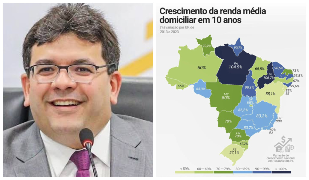 O rendimento médio per capita dos domicílios no Brasil cresceu 80% nos últimos dez anos, de acordo com dados da Pesquisa Nacional por Amostra de Domicílios Contínua (PNAD), do Instituto Brasileiro de Geografia e Estatística (IBGE). No Piauí, esse crescimento foi ainda mais expressivo, alcançando 106%, o maior do país. Em seguida, estão o Pará (104%), Alagoas (99%) e Tocantins (99%).
