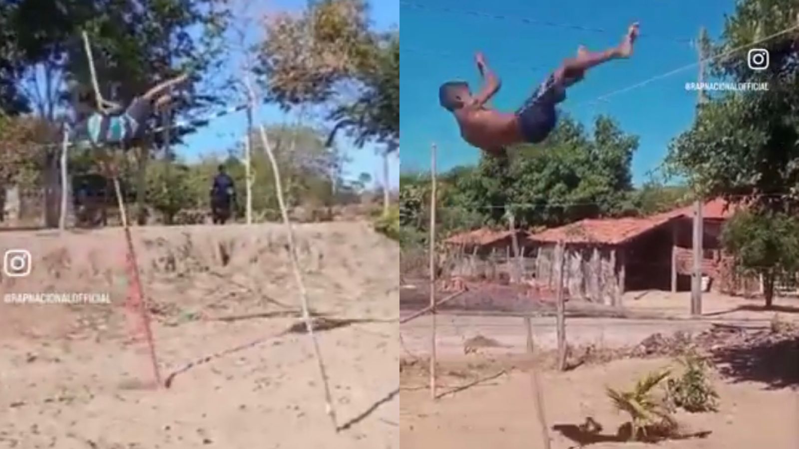 Um vídeo que mostra o menino Moisés da Silva, de 13 anos, praticando salto com vara improvisada na cidade de Curralinhos, no interior do Piauí, ganhou as redes sociais neste domingo (11).