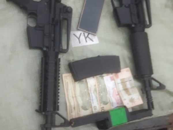 Ainda dentro da embarcação, dois fuzis com munições foram apreendidos, além de celulares, possivelmente dos tripulantes.