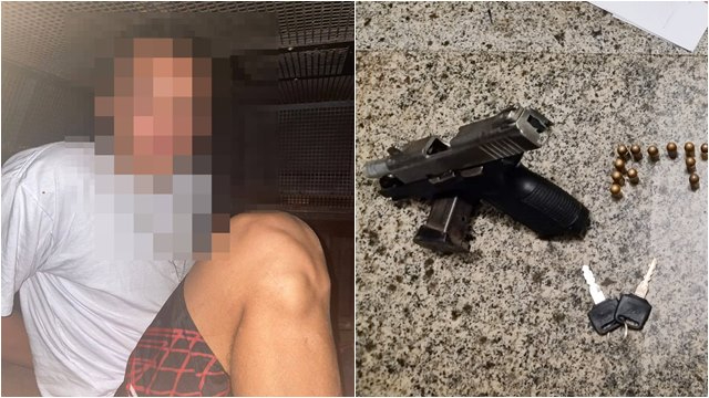 Em seguida, foram avistados dois indivíduos, que logo após acompanhamento tático, foi dado voz de parada, porém não obedecida. Na fuga os suspeitos adentraram ao bairro Barro Vermelho e na sequência, derraparam e caíram em uma curva. Um dos indivíduos ficou no solo e com ele foi encontrado uma pistola Taurus 380 e os celulares.