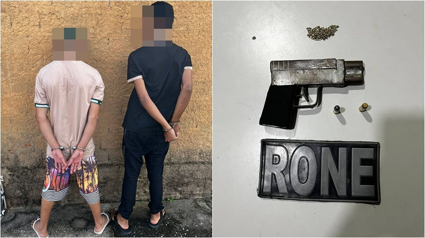 Diante da cena, a guarnição agiu rapidamente e deteve os suspeitos. Além disso, foi constatado que o objeto arremessado era uma arma de fogo de fabricação artesanal e cerca de duas munições calibre 38. Com isso, a dupla e o material recuperado foram encaminhados para a Central de Flagrantes da capital para a adoção dos devidos procedimentos.