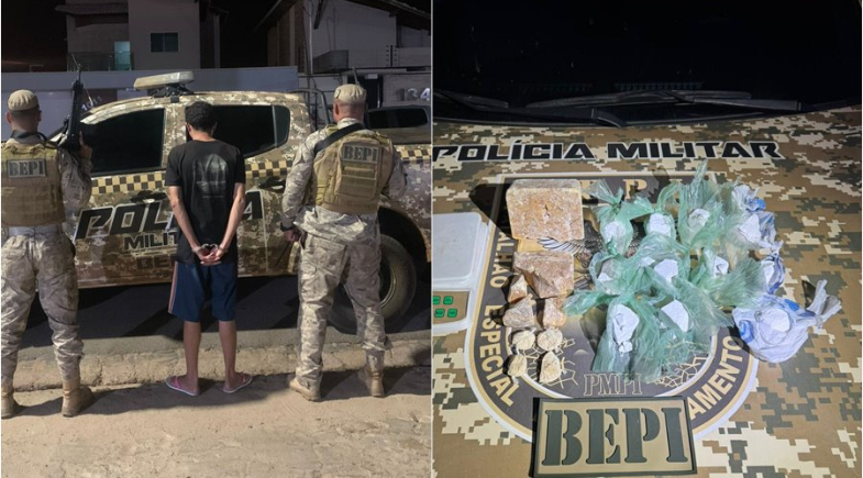Também foi localizada uma balança de precisão utilizada para preparo e fracionamento das drogas. O suspeito, L.C.S., possui passagem criminal por tráfico em 2023. Ele foi conduzido à Central de Flagrantes de Picos para as medidas cabíveis.