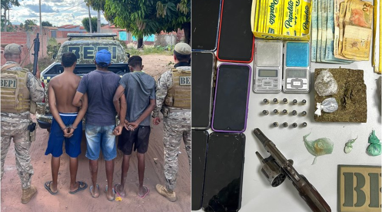 Em uma área do quintal, a equipe localizou duas balanças de precisão e armas enterradas. Também foram apreendidos R$ 510 em espécie, dez aparelhos celulares, uma caixa com papéis de “seda” (comumente usados para embalar entorpecentes) e um caderno com anotações que podem estar ligadas ao tráfico de drogas.