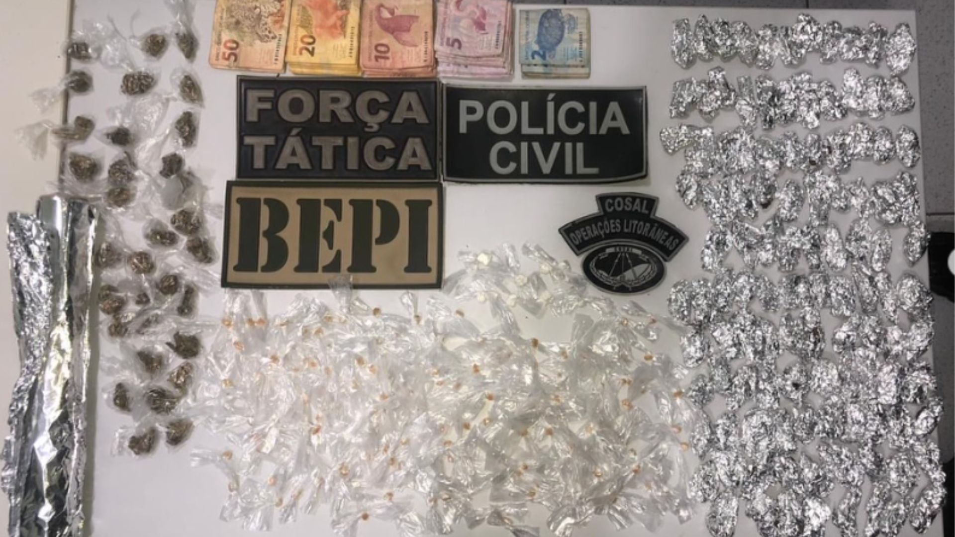 “Foi feito a abordagem e a busca pessoal em ambos, foi encontrado dinheiro e droga. Foram levados a Central de Flagrantes para a tomada das medidas cabíveis e legais”, escreveu a Força Tática.