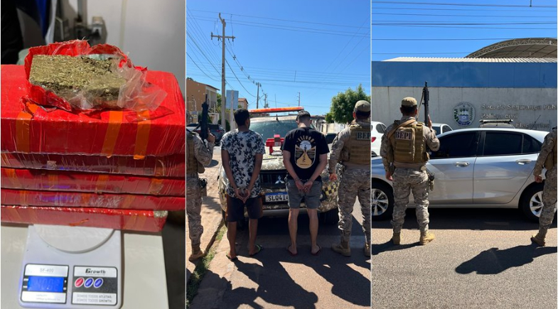 Com base nas informações, as equipes da PM e PRF iniciaram as diligências e conseguiram abordar o veículo suspeito na rodovia. Durante a revista, foram encontrados cinco tabletes de maconha, totalizando 4 kg, além de uma porção de substância análoga à cocaína pesando 300,8 gramas. Também foram apreendidos R$ 890 em espécie, uma maquineta de cartão, dois celulares (Motorola e iPhone) e o veículo utilizado no transporte.