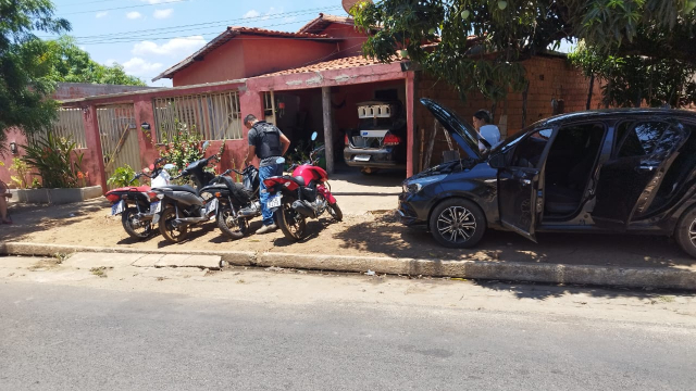 Durante a busca na residência investigada na cidade de Agricolândia, os policiais do DRFV encontraram 04 motocicletas roubadas ou adulteradas e um automóvel Fiat Argo”, disse o delegado.
