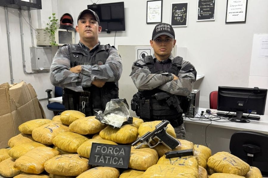 Durante a abordagem, os policiais encontraram 70 invólucros de substância análoga à maconha, um invólucro de cocaína, duas balanças de precisão e uma pistola calibre .380. Também foi apreendida uma televisão Smart TV de 50 polegadas ainda na caixa.