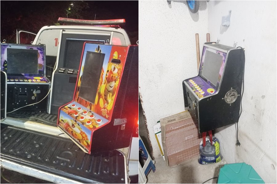Durante a abordagem ao estabelecimento, os policiais identificaram os equipamentos de jogo de azar próximos ao banheiro do local.