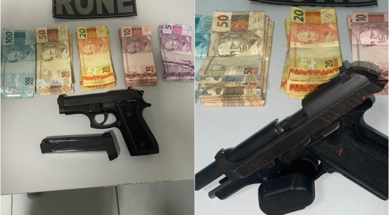 Arma de fogo e dinheiro apreendidos | Foto: Divulgação/PMPI