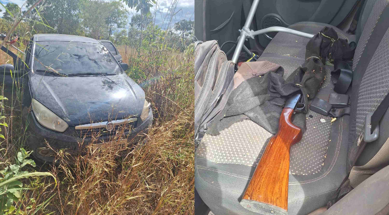 Durante a vistoria no veículo, os policiais encontraram um revólver calibre .38, uma espingarda, estojos de munição calibre .40, além de roupas, calçados, capacetes e outros objetos pertencentes aos criminosos. Também foram recuperados a mochila e a roçadeira levadas da vítima durante o assalto.