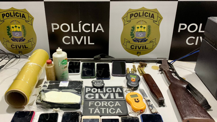 Durante as diligências foram encontrados celulares, balanças de precisão, arma de fogo, munições deflagradas e um tablete de cocaína de mais de um quilo. Foram apreendidos quatro carros e uma motocicleta. Os mandados foram cumpridos nas localidades Contentamento e Canto do Saco, na cidade de Oeiras e Santa Rosa.