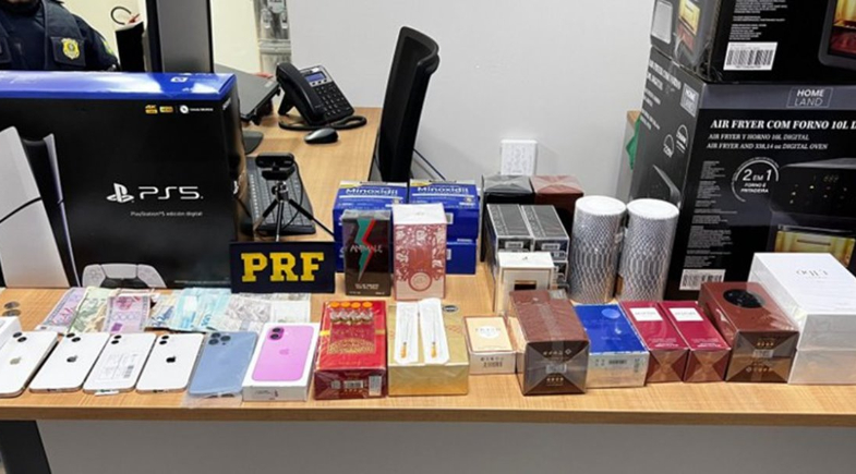 Por volta das 19h42, durante a fiscalização de uma caminhonete, foram encontrados diversos produtos sem a devida comprovação de regularidade fiscal e aduaneira, disse a PRF.