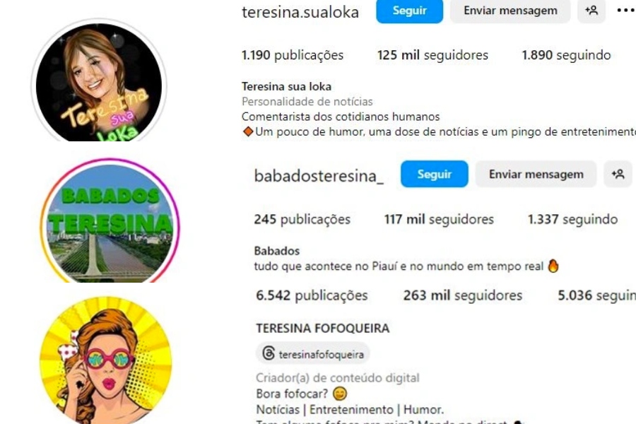 Maria Geiceli é quem está por trás da página de fofoca teresinense com maior quantidade de seguidores: 267 mil seguidores, que consomem o conteúdo diário da conta dela no Instagram. Na legenda da biografia do perfil, ela descreveu a página como sendo de notícias de "tudo que acontece no Piauí e no mundo em tempo real".