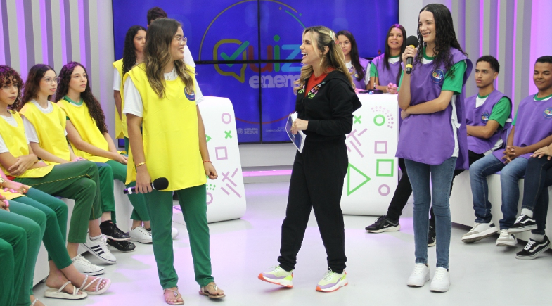 Neste sábado (16), os estúdios da Rede Meio receberam mais uma edição do Quizz Enem 2025, iniciativa que alia descontração e aprendizado como forma de preparar os alunos da rede estadual para o Exame Nacional do Ensino Médio. O projeto é resultado de uma parceria entre a Seduc e a emissora, que já se consolidou como uma ferramenta pedagógica inovadora.