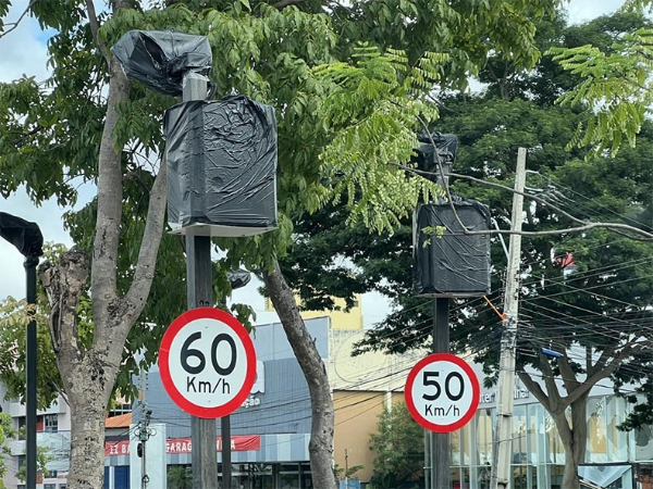 No domingo, os aparelhos instalados nas rodovias federais amanheceram cobertos por sacos plásticos