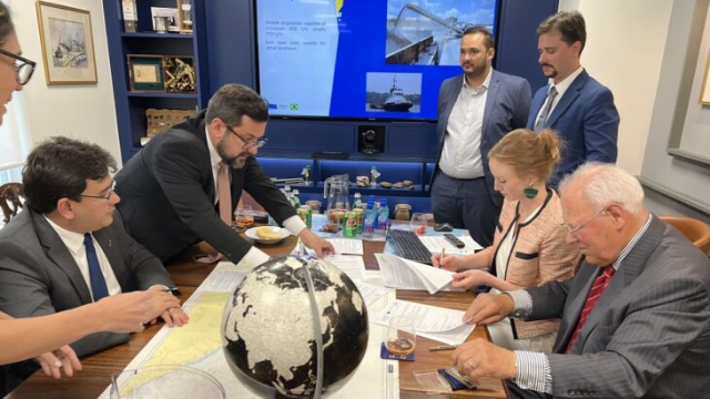 Dando continuidade aos seus compromissos, Rafael Fonteles foi até o escritório do grupo Ashley Global Shipping (AGS), onde assinou Memorando de Entendimento (MoU) com a empresa inglesa para o transporte de cargas e potencialmente de hidrogênio verde via Porto de Luís Correia. Durante o encontro, a AGS apresentou estudos para transbordo no porto piauiense, com condições técnicas, infraestrutura necessária, soluções e carga mínima para viabilizar o início das operações já em 2024.