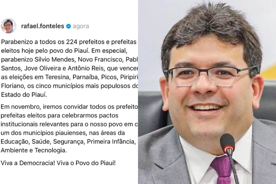 Com a apuração das urnas quase encerrada no Piauí, o governador do Piauí, Rafael Fonteles (PT), usou suas redes sociais para parabenizar os novos prefeitos de Teresina e de outras 223 cidades do estado, todos eleitos no primeiro turno. Fonteles destacou a importância da escolha popular, expressando sua satisfação pela participação cidadã no processo eleitoral. "Parabenizo a todos os 224 prefeitos e prefeitas eleitos hoje pelo povo do Piauí", escreveu o governador.