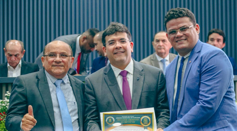 O governador Rafael Fonteles pode agora ser considerado um cidadão florianense. Na noite de sexta-feira (27), ele foi homenageado e recebeu o Titulo de Cidadania Florianense após uma cerimônia realizada pela Câmara Municipal de Floriano. Além do governante, personalidades e autoridades como a ex-governadora Regina Sousa, o desembargador Erivan Lopes, o presidente da OAB-PI, Raimundo Júnior, e o secretario de Estado da Comunicação, Marcelo Nolleto, também foram homenageados.